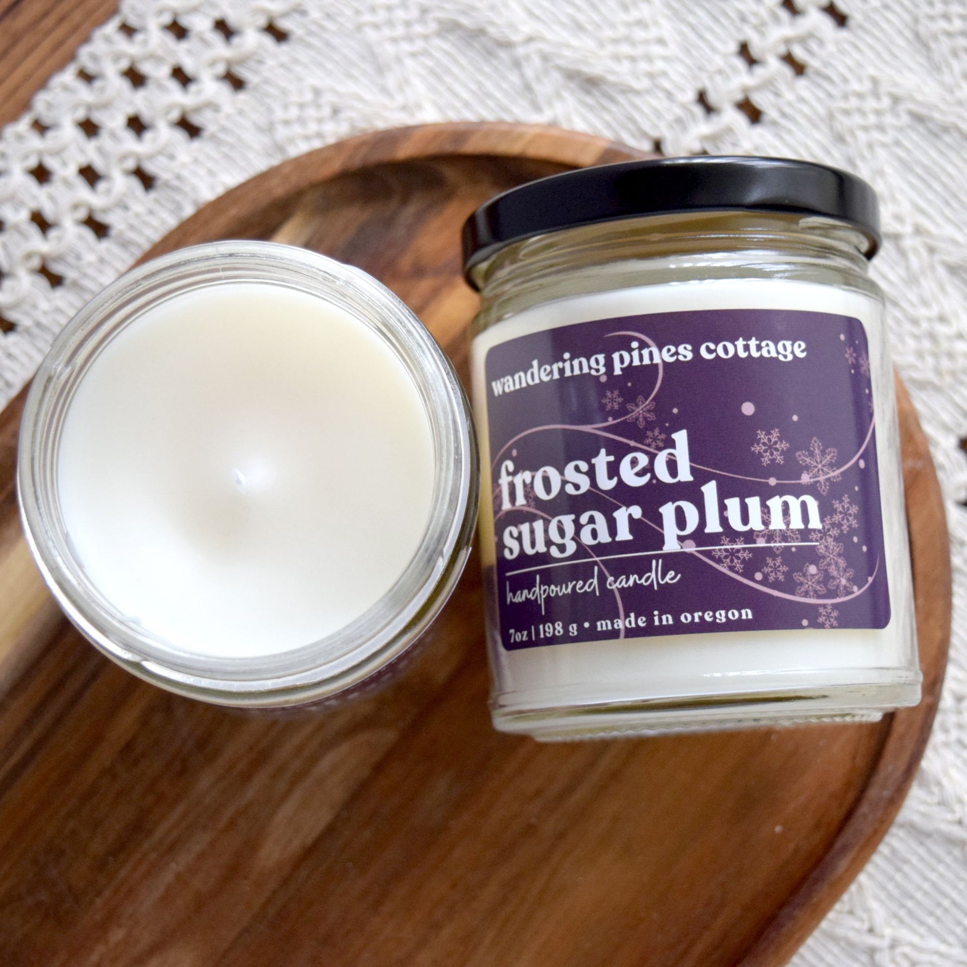 Your wax candle is hand poured by me here in Wandering Pines Cottage.